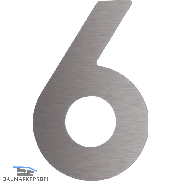 Hausnummer 6 - Höhe 120 mm, mit 2 Gewindenocken M5, Edelstahl