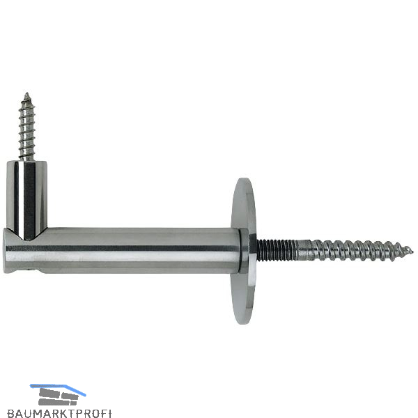 Marke: KWS Ausführung: mit Holzschraube zum Eindrehen Rosette (mm): ø 50 Wandabstand (mm): 75 Material: Edelstahl matt Befestigungsart: Stockschraube 8 x 80 mm