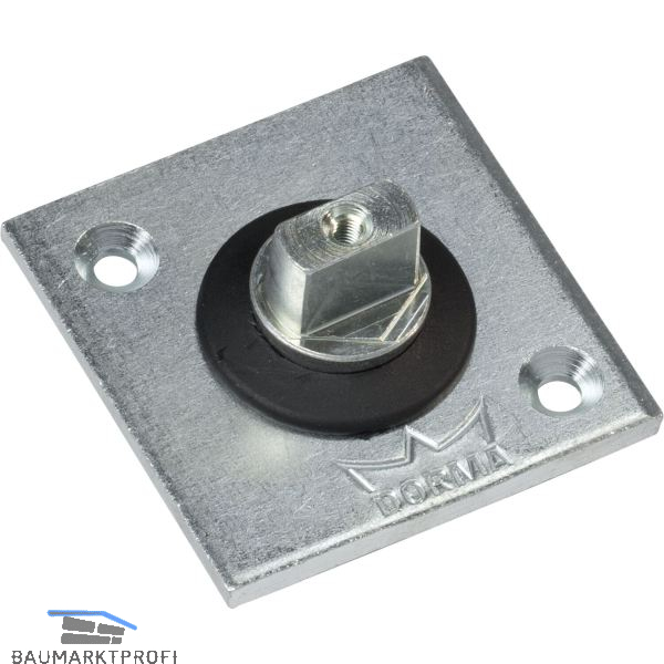 Mit kugelgelagertem, drehbaren Flachkonus auf Platte zur Verankerung in Stein- und Betonboden. Flügelgewicht bis 200 kg.