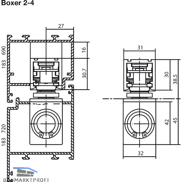 Mechanische Feststelleinheit nachrüstbar für beide Türflügel,