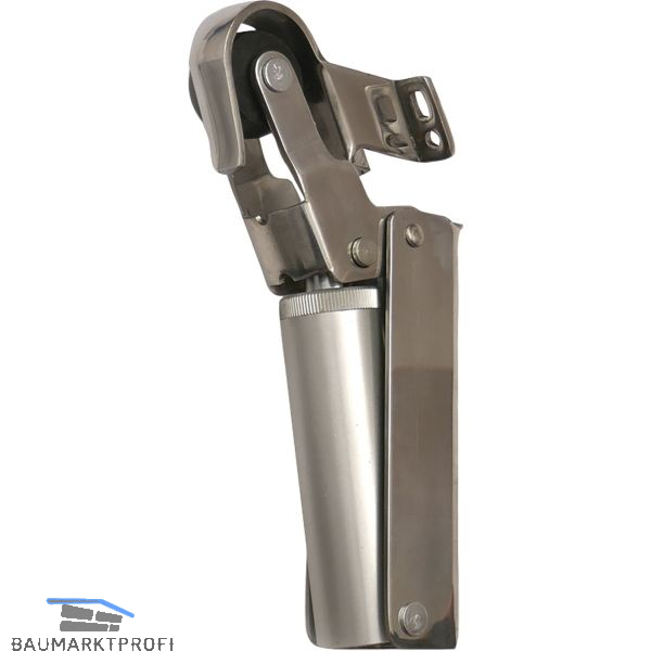 Durch den mit einer Gummirolle versehenen Abfangbügel ist ein lärmendes Zuschlagen des Flügels unmöglich, daher ist dieser Schließer besonders in Krankenhäusern, sowie bei Aufzugstüren u.ä. zu empfehlen. Auch für Schiebetüren verwendbar. Für gefälzte und stumpfe Türen.