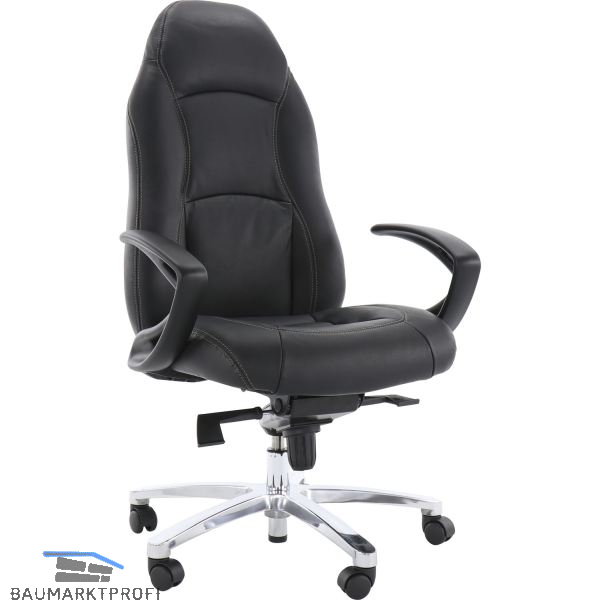 - Design-Aluminiumfußkreuz poliert mit lastabhängig gebremsten Sicherheitsdoppelrollen für Teppichböden.