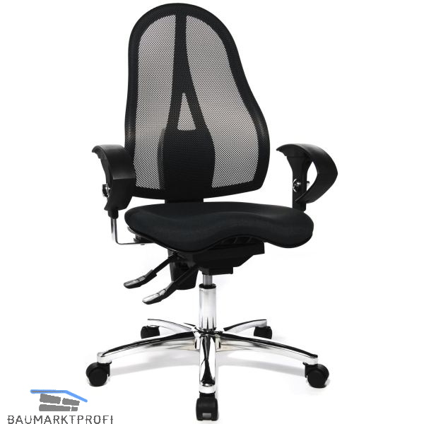 - Inklusive höhenverstellbarer Armlehnen chrom mit Kunststoffauflage schwarz.