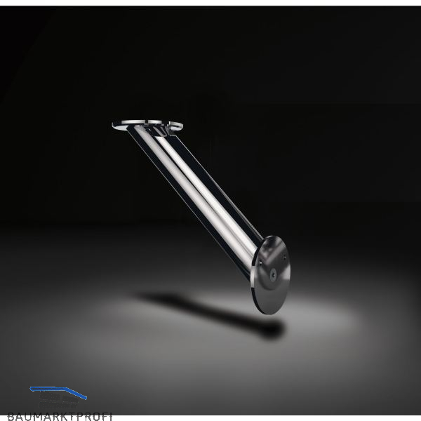 • Befestigung oben mit Befestigungsplatte Ø 90 x 6 mm, 2 Bohrlöcher Ø 6,5 mm (2 Spanplattenschrauben Ø 5 x 25 mm im Lieferumfang enthalten)