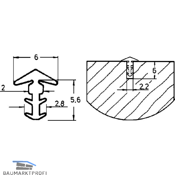P9003 Türanschlagprofi, Fräsbreite 2.2, Frästiefe 6, Weichgummi beige