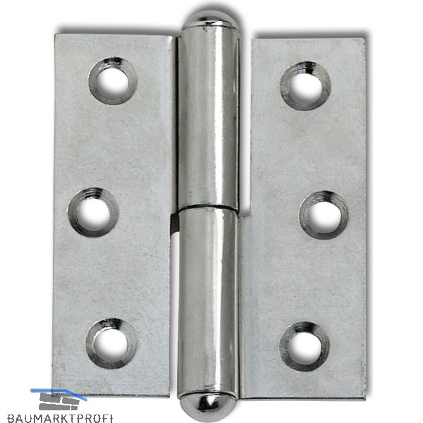 Möbelband gerade - Halbrundkopf links, 50x40 mm, Stahl vernickelt