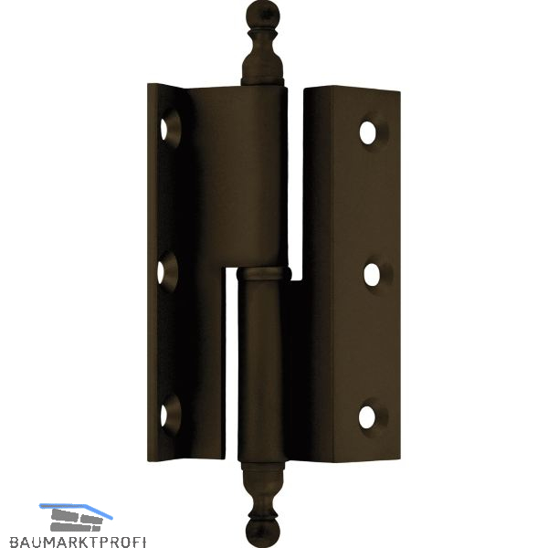 Stil-Möbelband Kröpfung D, Zierkopf 19 links, 50x33 mm, Messing brüniert