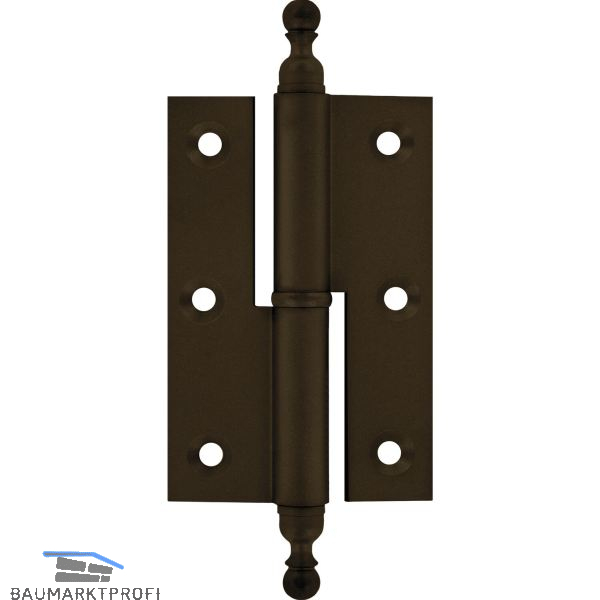 Stil-Möbelband gerade, Zierkopf 19 rechts, 50x40 mm, Messing brüniert
