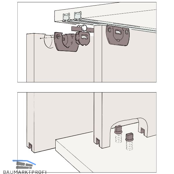 Hawa Clipo 15 H IS ist ausgelegt für zwei obenlaufende Holztüren bis 15 kg im Design Innenfront. Die Laufschiene wird eingenutet, im Boden hat es keine Nut. Das Laufwerk wird bei der Montage einfach eingeclipst. Die Höhenverstellung erfolgt bequem über das Finger-Justierrad (± 1,5 mm) am Clip-Laufwerk. Keine Blende beeinträchtigt das Erscheinungsbild.
