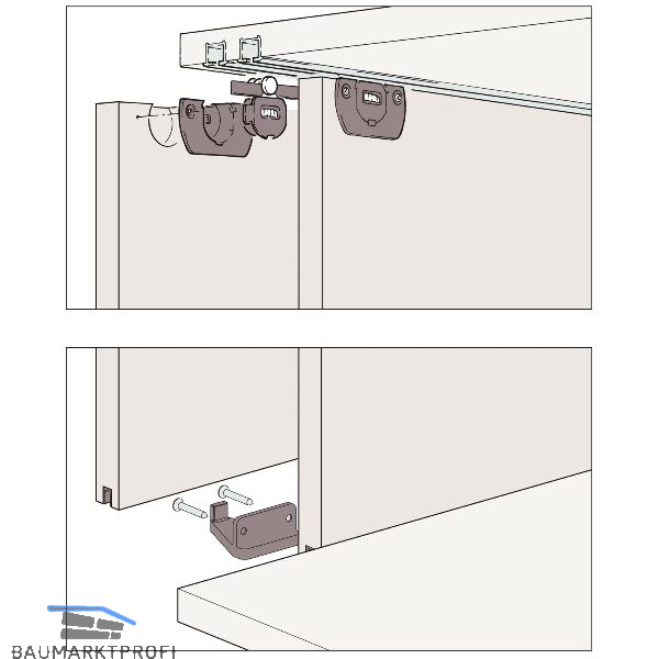 Hawa Clipo 15 H MS ist ausgelegt für zwei obenlaufende Holztüren bis 15 kg im Design Kombifront. Die Laufschiene wird eingenutet. Das Laufwerk wird bei der Montage einfach eingeclipst. Die Höhenverstellung erfolgt bequem über das Finger-Justierrad am Clip-Laufwerk. Keine Blende beeinträchtigt das Erscheinungsbild.