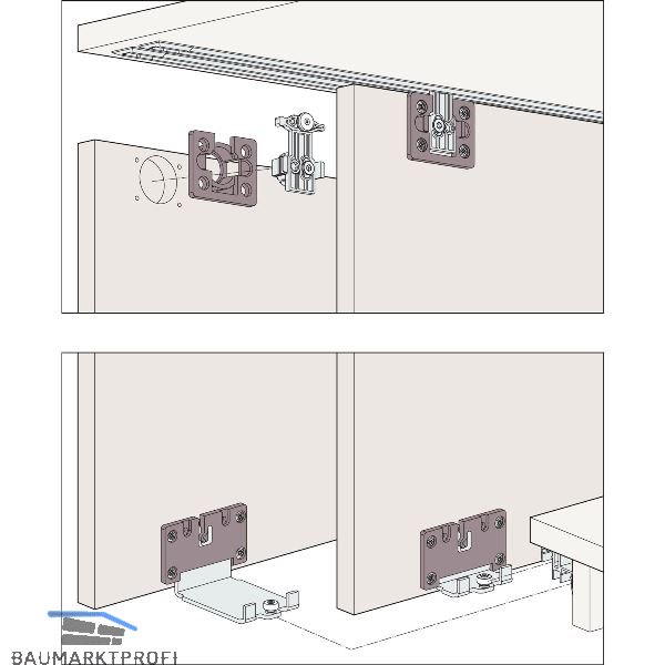 - Laufschiene eingenutet, keine Nut im Boden, ohne Blende, mit Clip-Laufwerk.