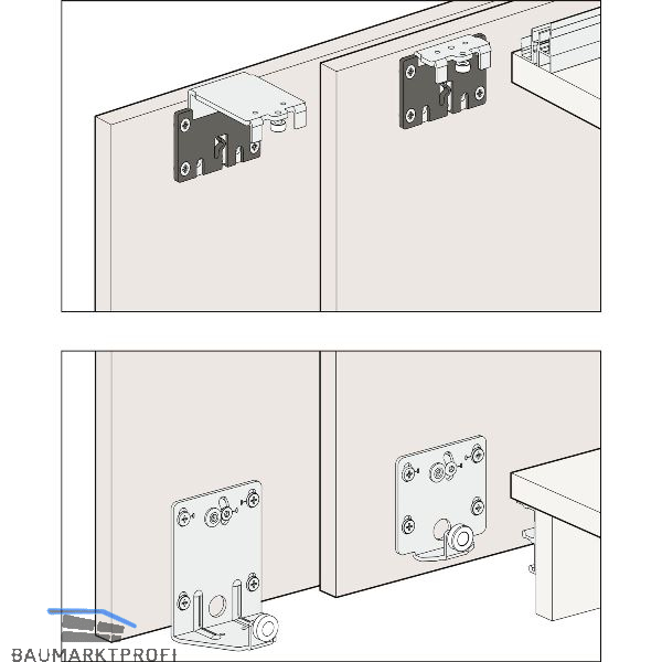 Hawa Combino 20/35 H FS ist der geeignete Beschlag für zwei bis drei Holztüren bis 20/35 kg, die im Design Außenfront bewegt werden. Die Laufschiene wird aufgeschraubt und die Lauftechnik bleibt bei dieser Außenfront-Lösung unsichtbar. Die Justierung erfolgt über die bewährte Hawa-Exzenterhöhenverstellung.