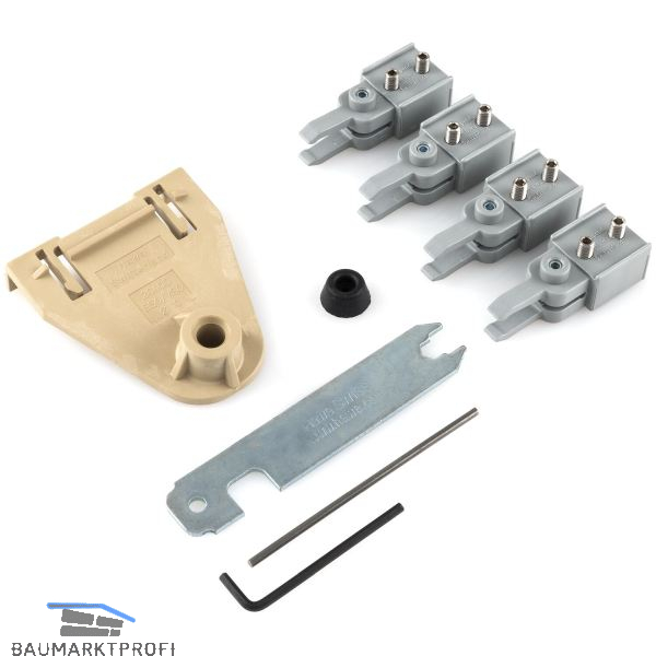 Lieferumfang:Schienenpuffer, Einwegbohrlehre (ESG/VSG),Gummipuffer, Feststellschlüssel,Inbusschlüssel, Höhenverstellstift