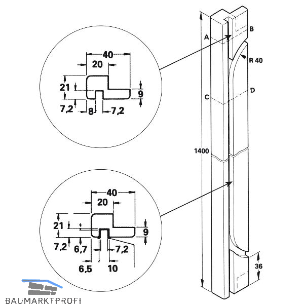 Hinweis:Bei Korpushöhen über 700 mm sind 2 Führungsleisten zu bestellen.