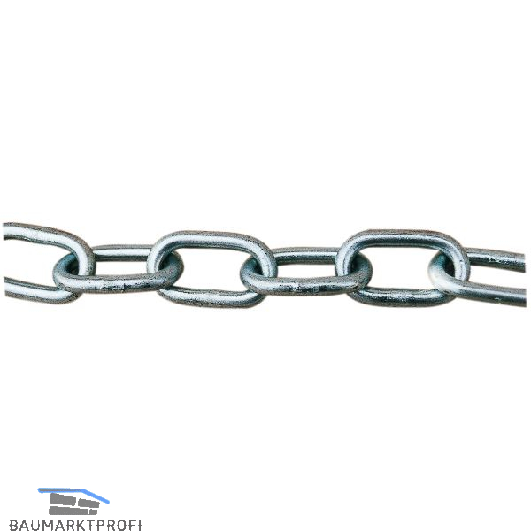 Werksnormkette flach, parallel, galvanisch verzinkt und chromatiert, für technische Zwecke und Befestigungen. Nicht als Lastenkette verwenden. Beanspruchungsgrenzen sind Richtwerte. Die Ketten sind nicht geprüft.