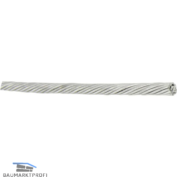 Konstruktion 7x7 mittelweich / Edelstahl A4 / Zugfestigkeit 1570 N/mm²Drahtseile 7x7 Litzen, nicht für Hebezwecke geeignet.