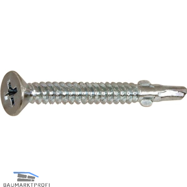 Die Schrauben bohren sich durch das Metall, formen ein Gewinde und befestigen somit das Holzteil auf Metall.