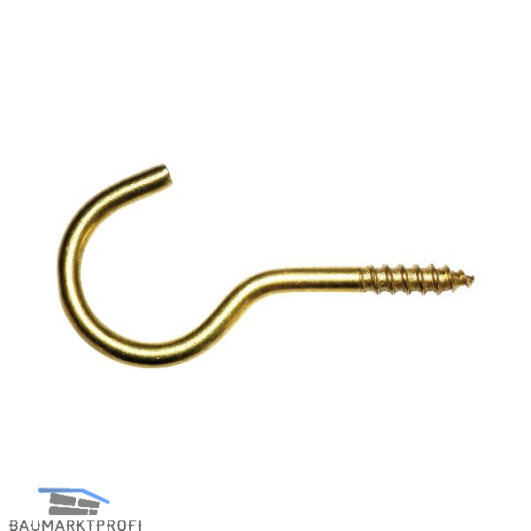 Schraubhaken mit Holzgewinde gebogen 2,6x30 Stahl vermessingt