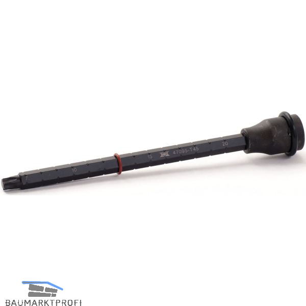 Das für den MULTI-MONTI®-TimberConnect (MMS-TC) Schwellenanker vorgeschriebene Setzwerkzeug ist ein Langbit mit Skalierung und einem verschiebbaren Markierungsring.