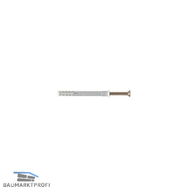 Beim Einschlagen der Nagelschraube wird der Dübel gespreizt und hält so durch Anpressdruck an der Bohrlochwandung. Geeignet für: Beton, Naturstein, Mauerziegel, Kalksand-Vollstein, Vollstein aus Leichtbeton, Porenbeton, Vollgips-Platten, Hochlochziegel, Kalksand-Lochstein, Hohlblockstein aus Leichtbeton