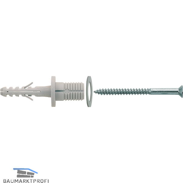Die beigepackten Kunststoff Unterlegscheiben ermöglichen das Ausgleichen von Unebenheiten.