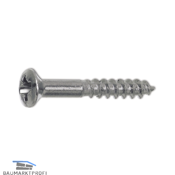 DIN7995 3.0 x 25 Pozidriv 1 Messing verchromt Holzschraube Linsensenkkopf