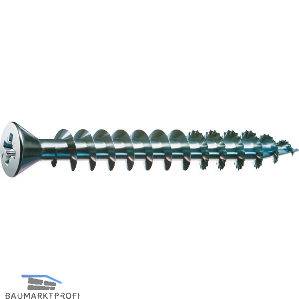 Mit 4CUT-Spitze, MULTI-Kopf (Fräs- und Bremsrippen), Wellenschliff, kunststoffgesintert und gleitbeschichtet. Speziell für die Befestigung von Klavierbändern und Stangenscharnieren geeignet.