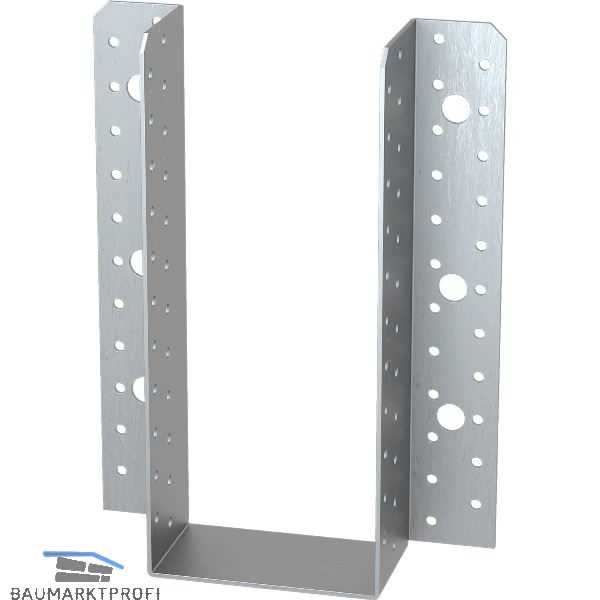 Extra starker Balkenschuh aus feuerverzinktem Stahlblech - 2,5mm; mit Kombilochung Ø 13mm.