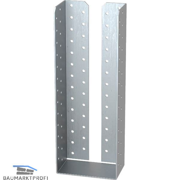 Dieser innenliegende Balkenschuh ist ein starkes Verbindungselement und ersetzt auf einfachste Art das Zapfen und umfangreiche Anschlussmaßnahmen.