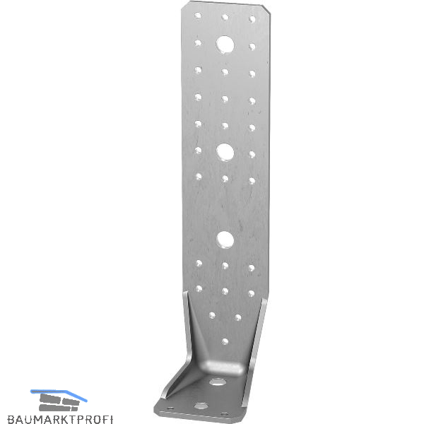 für einfache und schnelle Anschlüsse zwischen Holz/Holz, Holz/Beton, Holz/Stahl, usw. Durch die Stege im Biegeradius ist der Verbinder sehr stabil und für hohe Belastungen geeignet.