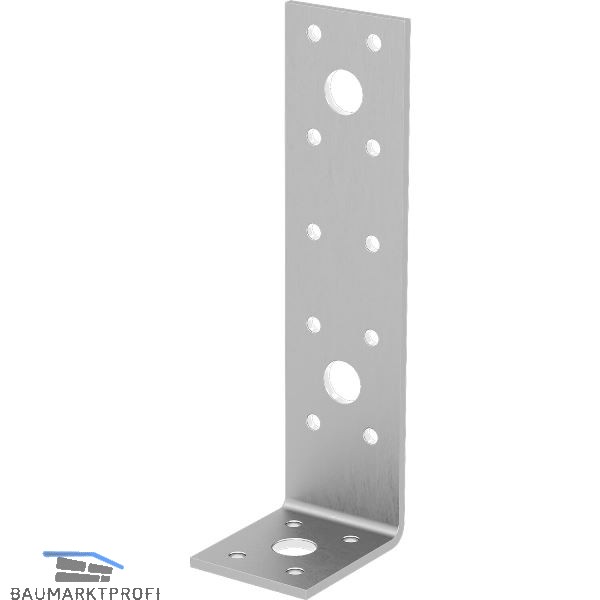 Für die Befestigung von Holzbauteilen auf anderen Baustoffen. Der kurze Schenkel überträgt mit einer M10 Schraube + Unterlegscheibe eine Sogkraft in die Unterkonstruktion.