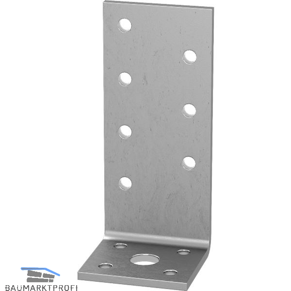 Für die Befestigung von Holzbauteilen auf anderen Baustoffen. Der kurze Schenkel überträgt mit einer M10 Schraube + Unterlegscheibe eine Sogkraft in die Unterkonstruktion.