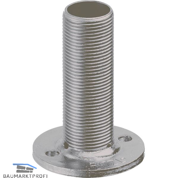 Pitzl Oberteil OT10931 wird für schnelle und saubere Säulen-Pfettenverbindungen eingesetzt. Dabei wird ein Loch mit einem ø von 42,5mm (43,5mm bei Abbundanlagen) in die Säule gebohrt und anschließend das Rohrgewinde direkt in das Hirnholz eingedreht. Durch eine Gewindestange M24 mit Mutter und Beilagscheibe kann in weiterer Folge die Säule an der Pfette verankert werden.