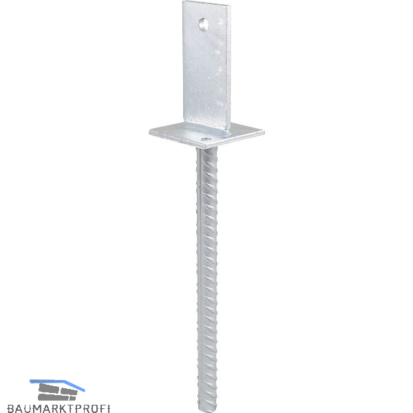 Betonstahl ø20 mm, Schwert 120 x 60 x 6 mm mit 1 Bohrung ø12,5 mm.