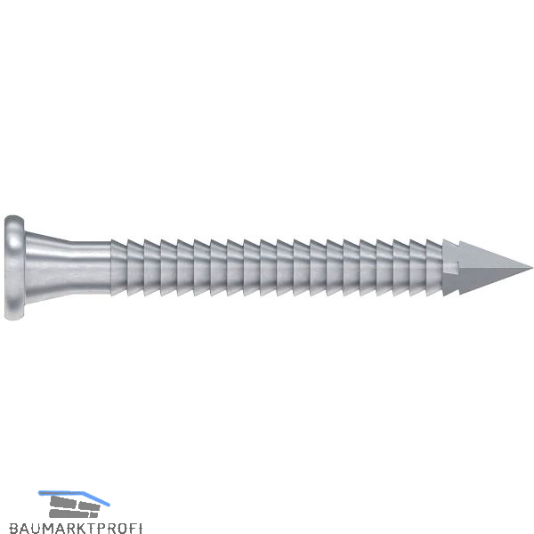 Der konische Ansatz des Schaftes unter dem Nagelkopf und die Verkämmung gewährleisten eine exakte Kraftübertragung bei Stahlblech-Holz Nagelverbindungen.