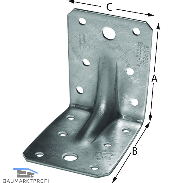 Anschlüsse in tragenden Holzkonstruktionen. Winkelverbinder mit Rippe sind besonders für große Kraftübertragung geeignet.