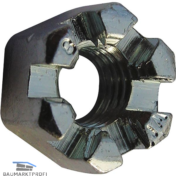 Die Kronenmutter ist eine Mutter, mit Schlitzen an einem Ende. Ihr Aussehen erinnert an die Turmkrone einer Burg, weshalb sie im englischen auch castellated nut genannt werden.