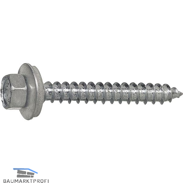 Dichtschrauben aus Vergütungsstahl verzinkt, mit Sechskantkopf nach DIN7976, mit fix aufmontierter Dichtscheibe ø 16 mm aus Stahl verzinkt und aufvulkanisierten EPDM-Dichtungen.