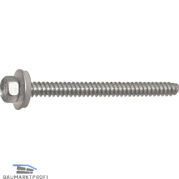 Dichtschrauben aus Vergütungsstahl verzinkt, mit Sechskantkopf nach DIN7976, mit fix aufmontierter Dichtscheibe ø 16 mm aus Stahl verzinkt und aufvulkanisierten EPDM-Dichtungen.
