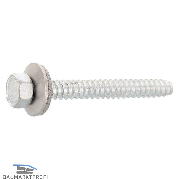 Dichtschrauben aus Edelstahl 1.4301 mit Sechskantkopf nach DIN7976, mit fix aufmontierter Dichtscheibe ø 16 mm aus Edelstahl und aufvulkanisierter EPDM-Dichtung.
