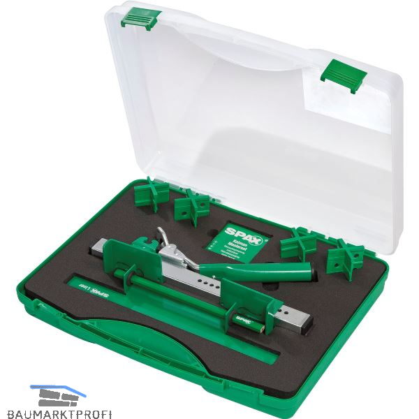 Lieferung inkl. Einschraubschablone (Liner), 4 Stück SPAX Fugenlehren für je 4 Fugenbreiten 4, 5, 6, 7 mm, Koffer.