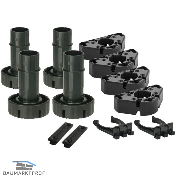 Lieferumfang:4 Sockelverstellfüße4 Oberteilgleiter zum Anschrauben2 Sockelblenden-Clips2 Anschraubplatten