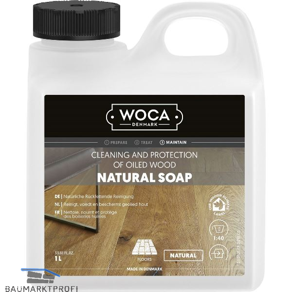 Natural Soap - Ideale Reinigung und Pflege für alle geölten, gewachsten und geseiften Holzoberflächen. Besonders für Fußböden, Möbel, Paneele und Arbeitsplatten, etc. geeignet.