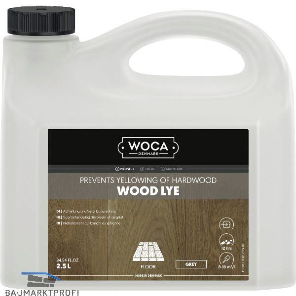 Wood Lye - die Behandlung mit Holzlauge hellt das Holz auf. Für unbehandeltes oder neu abgeschliffenes Holz im Innenbereich geeignet.