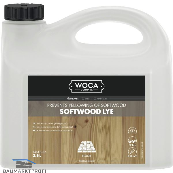WOCA Weichholzlauge dient zum Grundieren von unbehandeltem oder frisch geschliffenem Holz im Innenbereich, z. B. Böden, Treppen, Möbel und Paneele. Die Grundierung verhindert das Vergilben des Holzes, betont die natürliche Maserung und ergibt ein helles Aussehen.