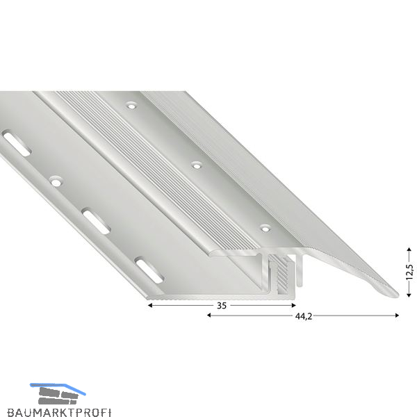 für einen gelungenen Ausgleich zwischen Parkett oder Laminatboden und angrenzenden niedriegeren flächen (z. B. Teppich, PVC, etc.) Für Bodenbeläge zwischen 7,5 und 15 mm Dicke geeignet.