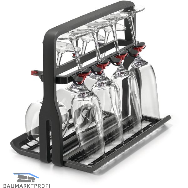 Die Softgrip-Halterungen halten die Gläser sicher an ihrem Platz, während flexible Schieber auf die Glasgröße eingestellt werden können, um langstielige oder große Gläser zu spülen.