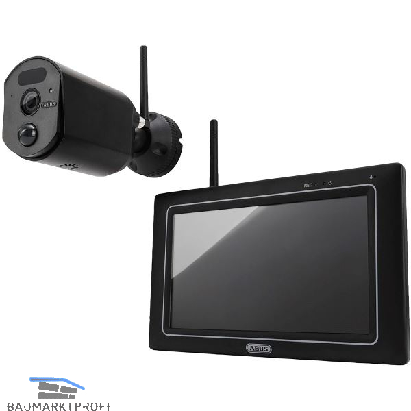 Das ABUS EasyLook Basic Set besteht aus einer Überwachungskamera und einem tragbaren 7-Zoll-Monitor mit Touchscreen. Es bietet eine hohe Reichweite, Bewegungserkennung, Alarm- und Aufnahmemodus, Gegensprechfunktion, Nachtsicht und Privatzonenmaskierung. Das Set ist einfach zu bedienen, benötigt keine zusätzlichen Geräte oder Internet/WLAN, und zeigt nach wenigen Sekunden das erste Livebild. Der clevere Bewegungsmelder (PIR) kann Personen und Tiere unterscheiden und ignoriert irrelevante Bewegungen. Der Monitor schaltet bei Alarm automatisch um und speichert Aufnahmen auf einer microSD-Karte (bis zu 128 GB, nicht enthalten). Das hochwertige Farbdisplay des Monitors ermöglicht Liveansicht, Aufnahmen und Gegensprechen. Persönliche Einstellungen sind per Touchscreen möglich, inklusive DSGVO-konformer Audioabschaltung, Zeitplänen und Privatzonen. Die Kamera bietet klare Nachtsicht bis zu 15 Meter, 3-Megapixel-Auflösung, Zoom, 82-Grad-Blickwinkel und ist wetterfest (IP66). Das System ist erweiterbar auf bis zu vier Kameras und verursacht keine weiteren Kosten (kein Abo, keine Cloud).