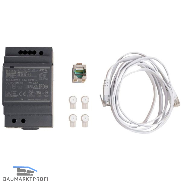 Lieferumfang: Hutschienennetzteil12V/4,5A, Cat.6a Keystone Modul, Flachband Netzwerkkabel 25 cm weiß, Scotchlok UY2 Einzeladerverbinder