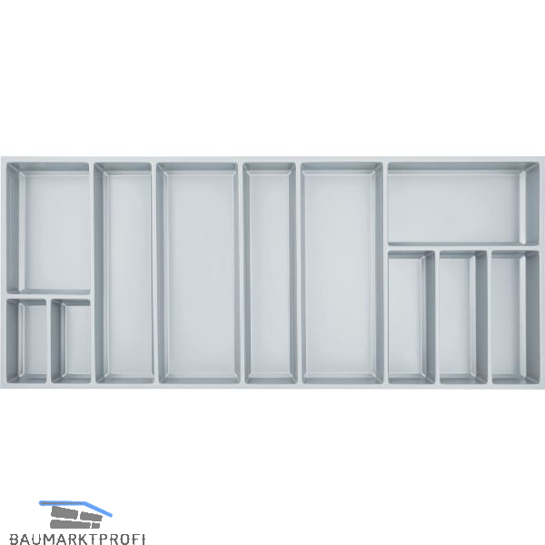 Marke: Agoform Type: Sky passend zu: Blum Legrabox NL 500 mm Korpusbreite (mm): 1200 B x H x T (mm): 1120 x 53 x 473 Material: Kunststoff Farbe: Silbergrau Oberfläche: genarbt